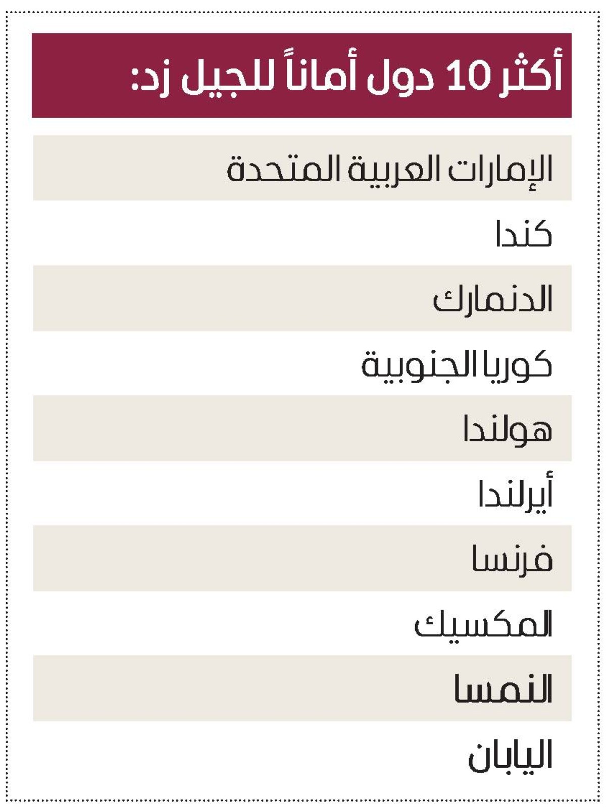 بحسب التقرير، لم تحقق الإمارات أداء قوياً فقط بين أفراد «الجيل زد»، بل هيمنت على القائمة بشكل واضح.