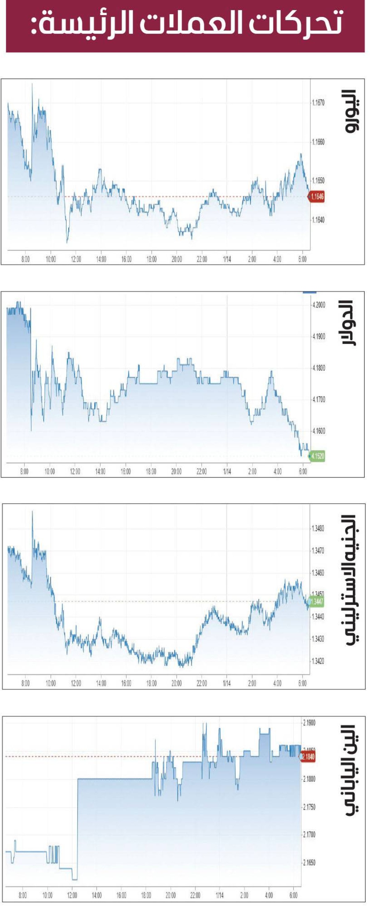 واستقر اليورو عند 1.1644 دولار، في حين ارتفع الجنيه الإسترليني في أحدث تعاملات 0.1 بالمئة إلى 1.3442 دولار.