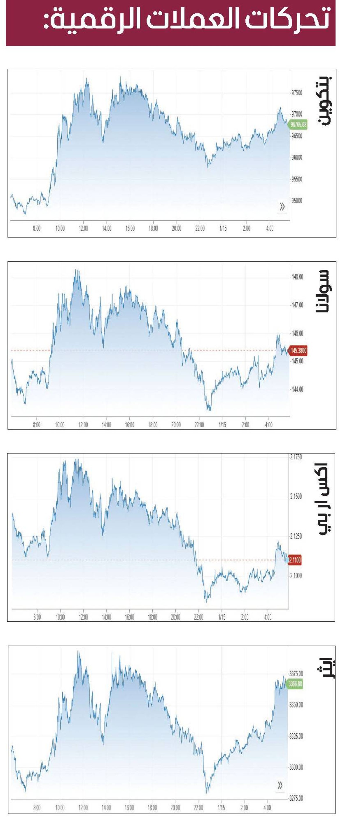 ابوظبي - ياسر ابراهيم - الخميس 15 يناير 2026 11:21 مساءً - شهدت أسعار العملات المشفرة تراجعاً جماعياً خلال تعاملات الخميس، وسط عمليات جني الأرباح من المستثمرين، للاستفادة من مكاسبها خلال الجلسة السابقة.