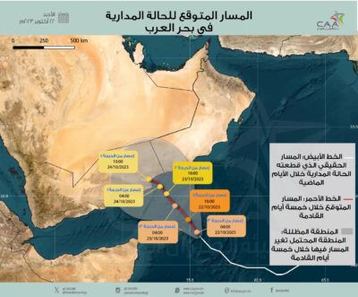 نشرت الأرصاد العمانية آخر تحديث للمسار المتوقع للحالة المدارية ” تيج ” خلال الفترة القادمة