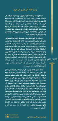 لذلك أدعو الأمة جميعا إلى مراجعة تراثها لتنقيته من كل دخيل على الاسلام مما يخالف نصوص القرآن الكريم والسنة الثابتة عن النبي صلى الله عليه وسلم، وحسب هؤلاء لو فقهوا أن يقارنوا بين أمرين بين المواجهة التي كانت بين العصابة الصهيونية ومن وراءها، وبين الأمة العربية التي اجتمعت بجيوشها الجرارة من المحيط إلى الخليج لمواجهة تلك العصابة وكانت مشتتة في الفكر بين من يؤمن بالمبادئ الاشتراكية والقومية والبعثية، فما كان إلا أن ولت على أدبارها مهزومة من قبل هذه العصابة، وسلبت من أيديها مقدسات الأمة واحتلت أراضيها، مع النظر الآن في أمر هذه المقاومة التي لا تقاس عدة ولا عددا بشيء من تلك الجموع، وإذا هي بتأييد الله تعالى تقلب الموازين رأسا على عقب حتى أعادت إلى الأمة عزتها وكرامتها، وما ذلك إلا لأنها موصولة بالله، ﴿ وَمَا النَّصْرُ إِلَّا مِنْ عِندِ اللَّهِ الْعَزِيزِ الحكيم }.