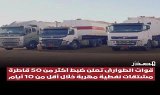 الرياض - ياسر الجرجورة في الأربعاء 15 أبريل 2026 04:01 صباحاً - أحبطت قوات الطوارئ اليمنية خطة واسعة للسوق السوداء، حيث أعلنت ضبط أكثر من 50 قاطرة محمّلة بالمشتقات النفطية خلال أقل من عشرة أيام فقط. وجاءت هذه الضبطيات الكبيرة نتيجة عمليات استهدفت شبكات تهريب تنشط في السوق السوداء، وفق ما أفادت به القوات.