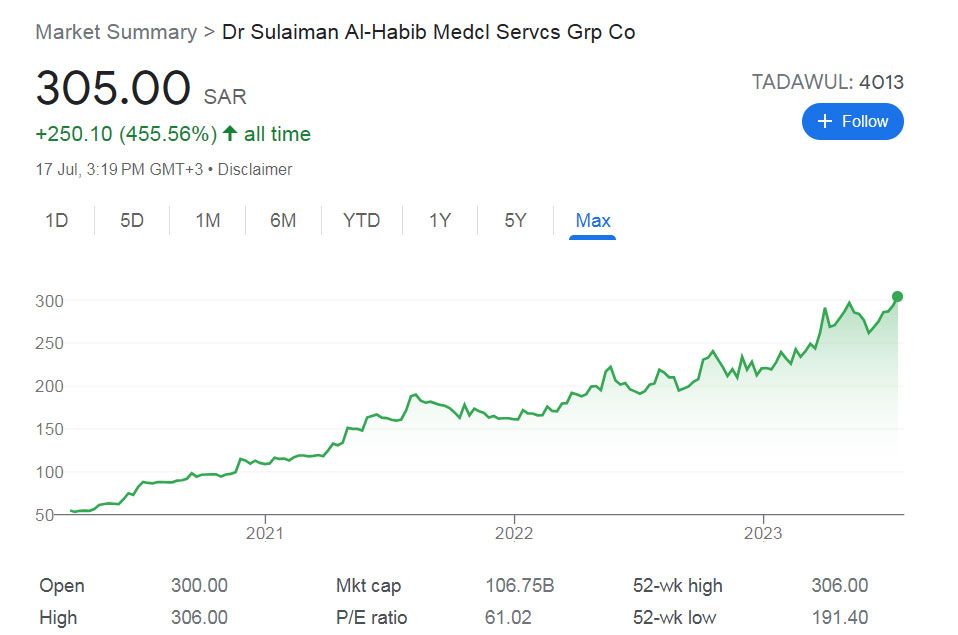 وجاءت هذه القفزة المفاجئة في ثروة الحبيب، بعد أن سجل سهم الحبيب في سوق الأسهم السعودي الأسبوع الماضي رقماً تاريخياً حيث وصل لـ 306 ريال، لتصل قيمته السوقية: 107.1 مليار ريال.