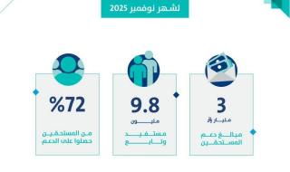 الرياض - سعد محمود في الخميس 13 نوفمبر 2025 01:22 صباحاً - أعلن برنامج حساب المواطن، يوم الاثنين، عن إيداع مبلغ 3 مليارات ريال لدعم المستفيدين الذين أكملوا طلباتهم لشهر نوفمبر، وقد سجل البرنامج أكثر من 9.8 مليون مستفيد ومستفيدة استوفوا شروط الاستحقاق في الدفعة رقم 96.