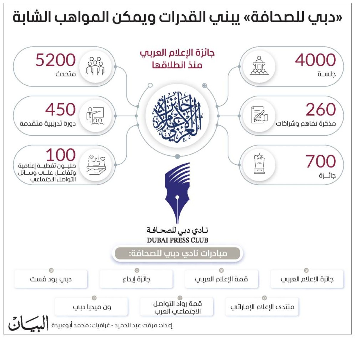 ابوظبي - ياسر ابراهيم - الثلاثاء 3 مارس 2026 12:00 صباحاً - يواصل نادي دبي للصحافة ترسيخ مكانته منصة استراتيجية مؤثرة في المشهد الإعلامي العربي، متجاوزاً دوره التقليدي في تنظيم الفعاليات، ليصبح فاعلاً رئيساً في صياغة أجندة الإعلام، وداعماً لتطوير الكفاءات الإعلامية وصناعة القرار المهني في المؤسسات الإعلامية.